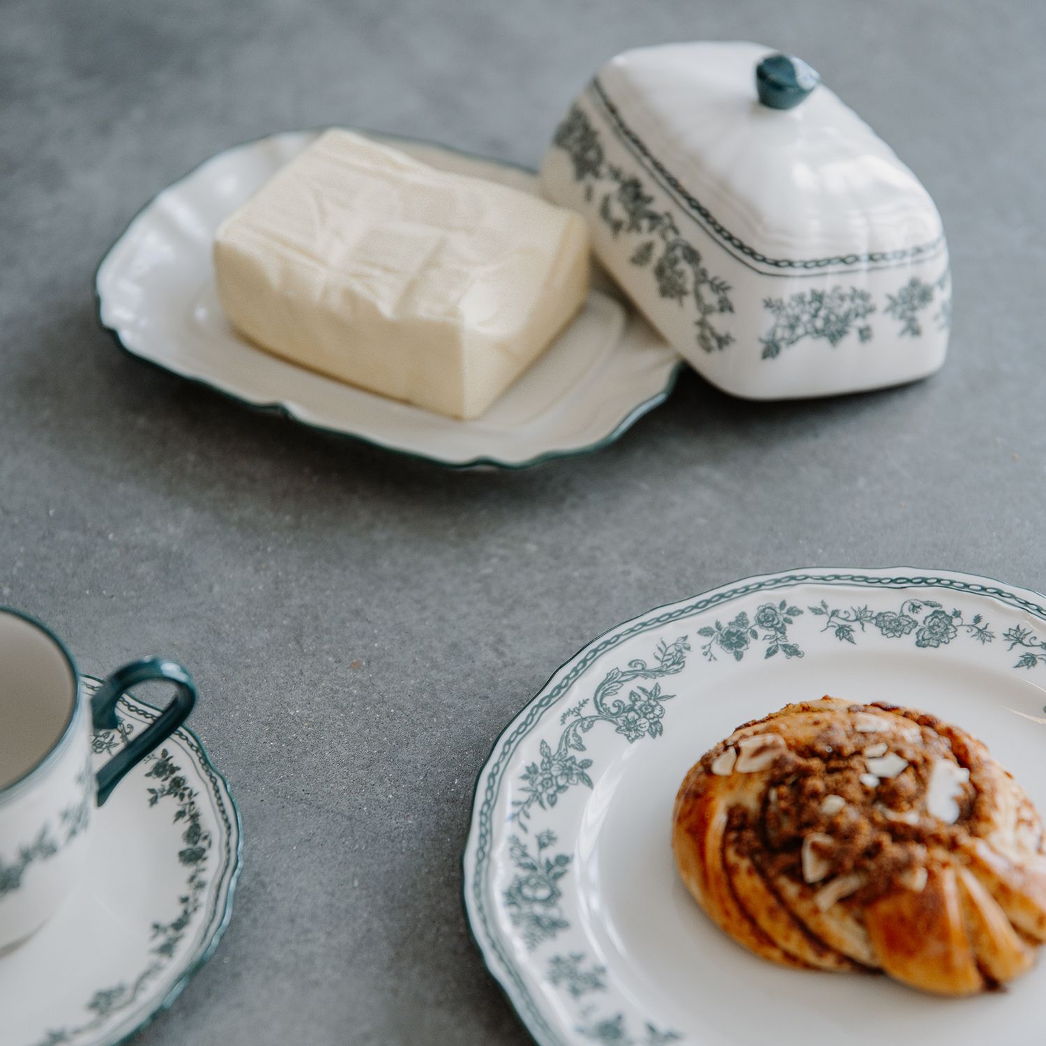 De Cyril-collectie brengt een frisse heropleving van vintage charme naar je tafel. Delicate bloemmotieven, herzien in modern groen en diep bordeaux, vinden de perfecte balans tussen nostalgisch karakter en eigentijdse stijl. Gemaakt van verfijnd porselein voelt elk item – van borden en kommen tot mokken, botervlootjes en melk- & suikerpotjes – als een kostbare vondst met een moderne twist. Cyril kleedt de tafel niet alleen aan; het creëert een sfeer. Combineer het met de texturen en tinten van nu en zie hoe moeiteloos het elke maaltijd verheft, van ontspannen ontbijtjes tot prachtig gestileerde diners. Een echte feelgood-collectie voor wie houdt van retro flair met een moderne ziel.