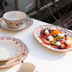 De Cyril-collectie brengt een frisse heropleving van vintage charme naar je tafel. Delicate bloemmotieven, herzien in modern groen en diep bordeaux, vinden de perfecte balans tussen nostalgisch karakter en eigentijdse stijl. Gemaakt van verfijnd porselein voelt elk item – van borden en kommen tot mokken, botervlootjes en melk- & suikerpotjes – als een kostbare vondst met een moderne twist. Cyril kleedt de tafel niet alleen aan; het creëert een sfeer. Combineer het met de texturen en tinten van nu en zie hoe moeiteloos het elke maaltijd verheft, van ontspannen ontbijtjes tot prachtig gestileerde diners. Een echte feelgood-collectie voor wie houdt van retro flair met een moderne ziel.